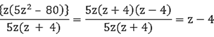 Solve z (5z2 – 80) ÷ 5z (z + 4)